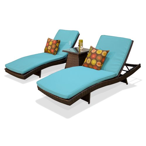 Pair of Tahiti Outdoor Wicker Patio Chaise Lounges Tropical Blue